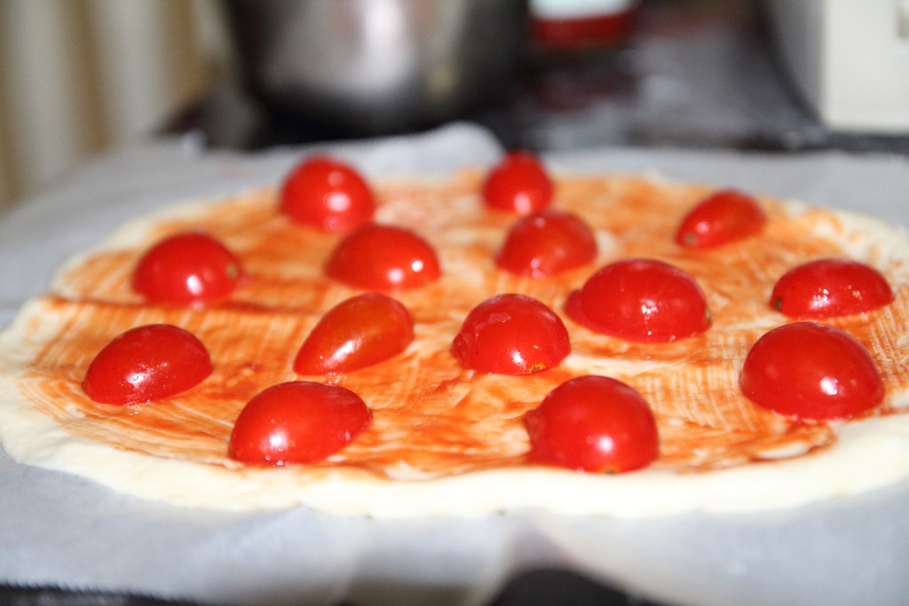 接著糊上番茄醬、鋪料